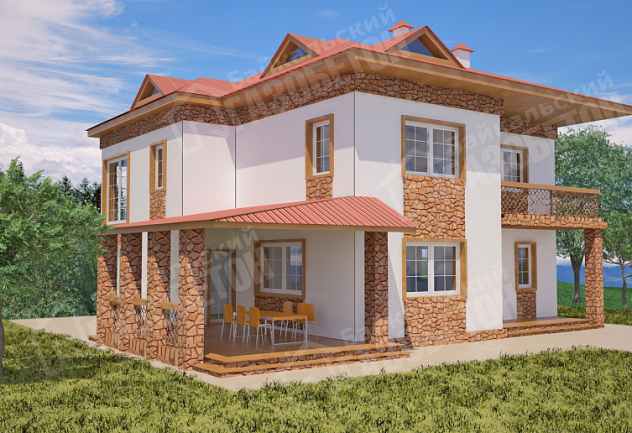 Стильный и уютный двухэтажный дом с просторным гаражом, подходит для приятного времяпрепровождения дружеских вечеров. Большой балкон и веранда добавляют дому удобства и семейного уюта.